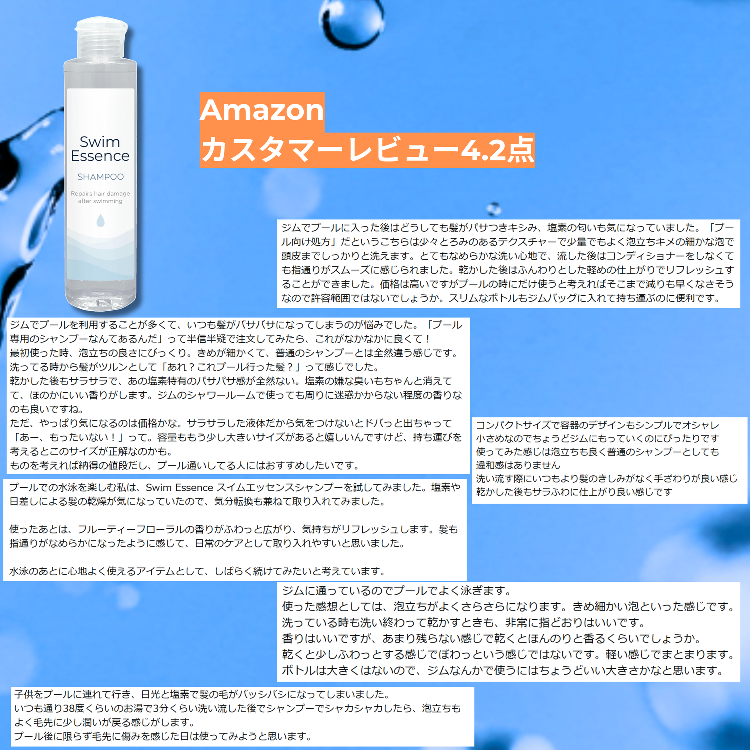 たくさんの高評価をいただいております:シャンプー